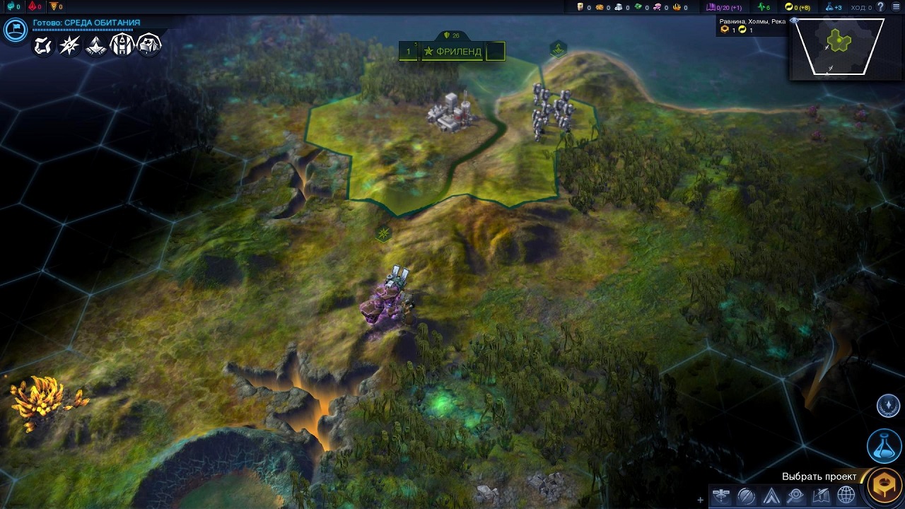 Помимо борьбы с инопланетной фауной, мы будет сражаться за первенство с другими колонистами. Вначале нам дают несколько ходов, только потом другие колонии высаживаются на планету и начинают развитие. Зайдя в дерево технологий, за голову возьмется даже самый опытный покоритель цивилизаций. Однако не все так страшно, правда стоит отметить великолепную работу разработчика, они действительно великолепно продумали технологическое развитие, описание каждого отдельного исследования действительно написано очень интересно.